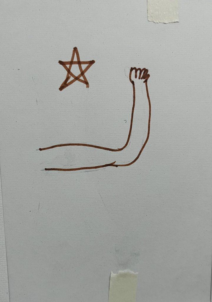 T : 그림을 그릴 때 나의 몸이 어떻게 느끼는지 그리는 과정이 있는데 그림을 그리면서 내 눈이 아프다 느끼고, 가슴이 답답하다면서 이런 그림을 그렸어요.